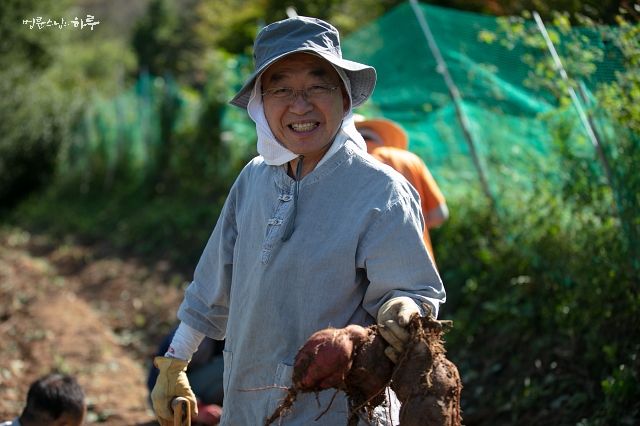“제가 그동안 마트에서 봤던 고구마는 아주 깔끔했거든요. 그런데 오늘 실제 밭에서 캔 고구마는 털도 많고 생김새도 못 생겼더라고요. 아, 내가 본 고구마가 전부가 아니었구나. 고구마도 팔려 가려면 성형을 해야 하는구나, 하는 것을 알 수 있었습니다.” (웃음)
