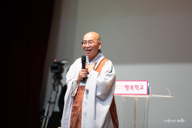 두 시간이 훌쩍 넘었습니다. 다른 때 보다 마치는 시간이 늦었습니다. 스님은 “너무 늦었네요. 여러분, 행복하게 사시기 바랍니다!” 라고 인사한 후 강연을 마쳤습니다.