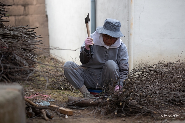 안녕하세요. 오늘은 작년에 비닐하우스에서 고추를 수확하고 남은 고춧대를 땔감으로 만드는 일을 했습니다.