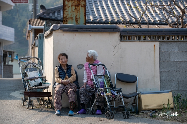 해가 질 무렵 산을 내려왔습니다. 오늘도 땀 흘려 일한 보람된 하루가 지나갔습니다. 동네 입구에는 아침에 스님이 두고 간 새 의자에 어르신들이 앉아 정겹게 이야기를 나누고 있었습니다.