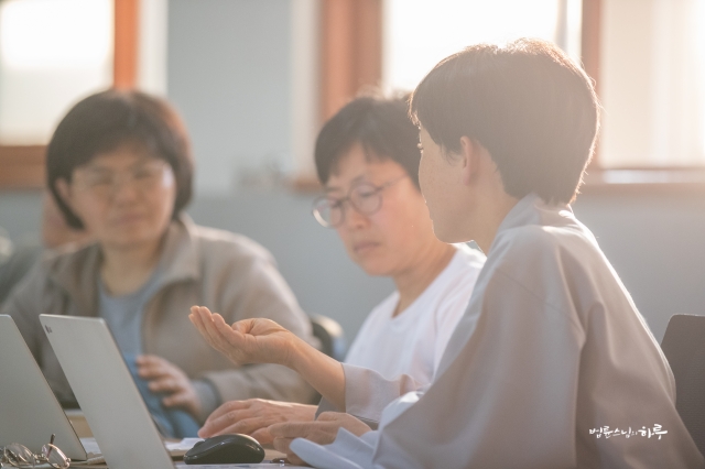 모둠장의 역할이 점점 강화되어야 하는데, 앞으로는 법당에 나와서 청소하고 공양을 짓는 것보다 사람을 살피는 훈련을 해야 전법을 널리 할 수 있습니다.”