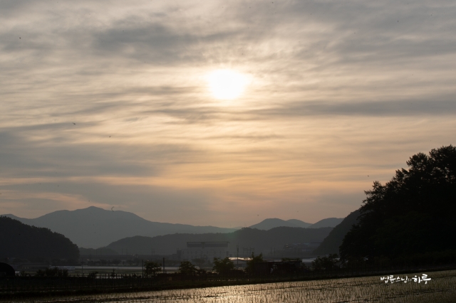 물이 찰랑찰랑하는 논 위로 푸른 하늘과 산이 투명하게 비쳤습니다. 한 분이 농장의 규모를 보고 깜짝 놀라며 말했습니다.