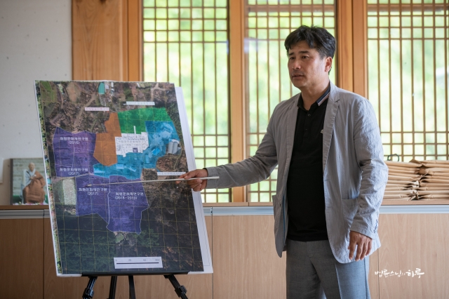 절이 불타고 이곳이 폐허가 되자 마을 사람들이 여기까지 올라와서 농사짓고 살다 보니 대부분이 민간인 땅이 되어버렸습니다. 그래서 불심 도문 큰스님이 1970년대에 이 일대의 부지 6만 평을 틈나는 대로 계속 구입하셨어요. 동네의 절반 정도와 산을 모두 구입했지만, 일부는 아직도 구입을 못했습니다. 그렇게 해서 50년이 흘러온 겁니다.
