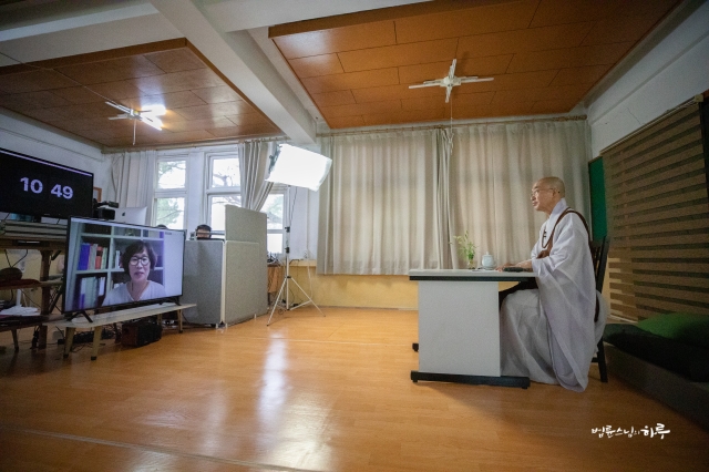 수십 개의 질문이 올라왔지만, 그중에서 7명이 선정되어 스님과 화상으로 연결하여 대화를 주고받았습니다.