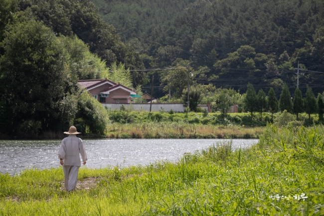 우렁이들이 제자리로 돌아가게 한 후 스님은 수로에 노란 바구니를 하나 박아 두었습니다. 혹시나 물에 떠내려가는 우렁이들이 바구니에 걸리도록 하기 위해서입니다.