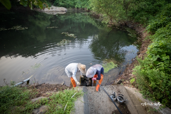 “제가 호스 입구를 저수지에 넣으면서 외칠 테니까 바로 열어주세요.”