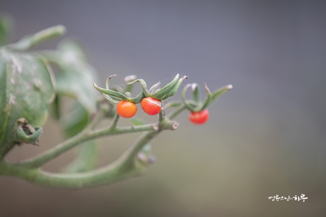 주먹만 한 토마토가 달리던 줄기에 새끼손톱보다 작은 토마토가 빨갛게 익어있었습니다. 마지막 힘을 다해 토마토를 키우고 있는 것 같았습니다.