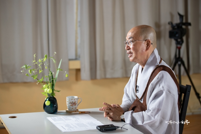오전 10시가 되자 스님은 생방송 카메라 앞에 앉았습니다. 오늘은 8월 마지막 수행법회 일입니다. 스님은 날씨 이야기와 함께 법문을 시작했습니다.