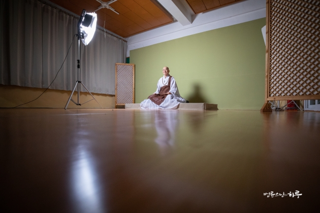 카메라에 빨간불이 들어오자 스님이 시청자들에게 인사를 건넸습니다.