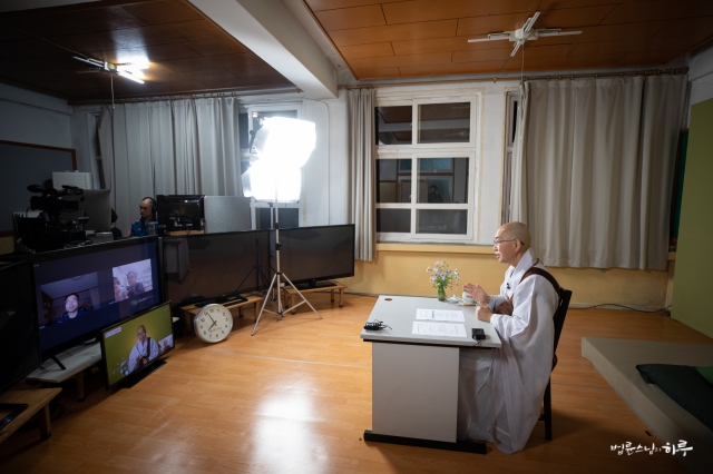 900여 명이 접속한 가운데 스님은 책상 앞에 놓인 꽃을 소개하며 대화를 시작했습니다.