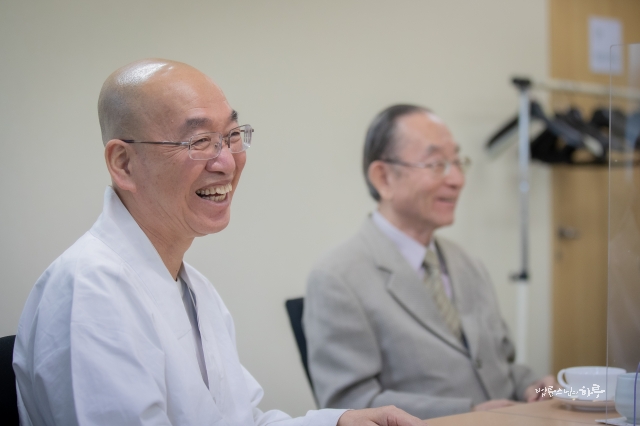 종교인분들을 현관까지 배웅한 후 스님은 이어서 다음 일정을 이어나갔습니다. 오전에는 평화재단 기획위원회 회의를 하고, 점심에는 찾아온 손님과 미팅을 하고, 오후에는 작곡가 김형석 님이 평화재단을 찾아왔습니다.