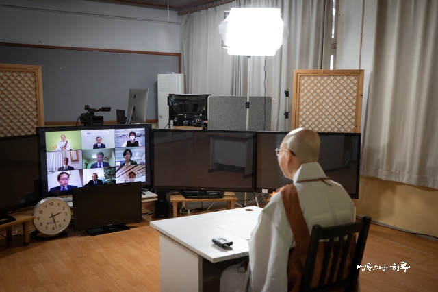 합장으로 인사를 한 후 온라인 기자회견을 마쳤습니다.