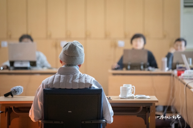 방송실을 나온 스님은 곧이어 오후 4시부터 오전에 하던 정토대전 편찬 회의를 다시 이어서 했습니다.