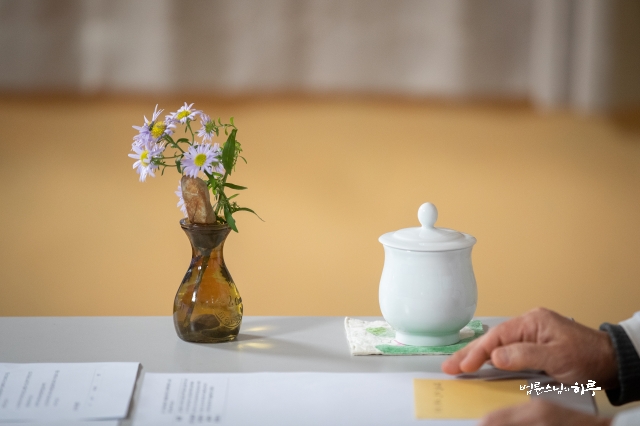 이렇게 제 하루 일과를 소개해 드리면 ‘스님이 왜 농사를 지어요?’라고 묻습니다. 올해는 코로나 때문에 대중 강연이나 해외에서 하던 여러 프로그램들을 못 하게 되었어요. 그래서 시골에 내려와서 매일 농사를 짓고 있습니다. 올해 농사지은 것은 거의 수확이 끝났지만 아직 할 일이 많이 있습니다. 콩을 타작하는 일, 산수유와 감을 수확하는 일, 아직 덜 심은 겨울 채소를 심는 일 등이 남아 있어서 일정이 빠듯합니다.” (웃음)