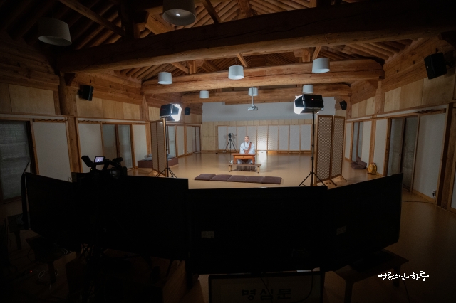 저녁 7시에는 송년 메시지 녹화를 했습니다. 유튜브와 sns 구독자들에게 올릴 송년 메시지를 10분 정도 촬영한 후 이어서 7시 30분에 금요 정기법회를 시작했습니다. 올해 마지막 생방송 정기법회이기 때문에 스님은 한해를 잘 마무리하는 법에 대해 이야기해주었습니다.
