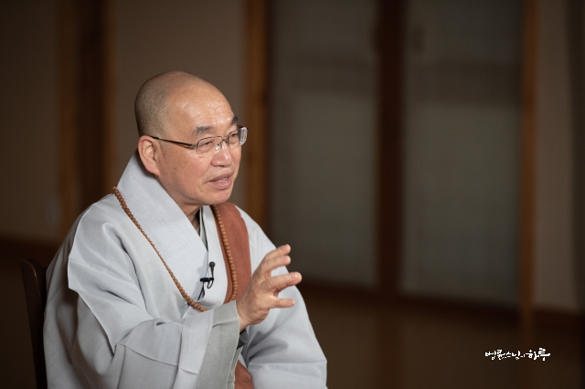 기도가 끝나고 스님은 카메라를 향해 돌아앉아 법문을 시작했습니다.