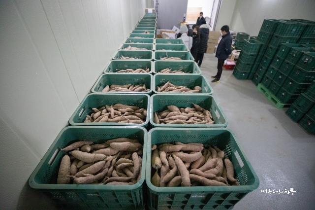 제천에 도착하니 눈발이 흩날렸습니다. 고구마는 농업기술센터 내에 잘 보관되어 있었습니다. 스님은 먼저 공희정, 조준호 부부에게 인사를 드렸습니다.