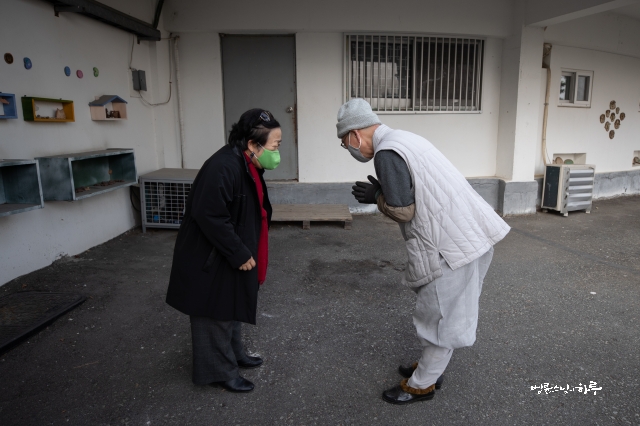 “아이고, 스님! 전화도 안 주시고... 너무 고맙습니다. 점심은 드셨어요? 차라도 한 잔 하시고 가셔요.”