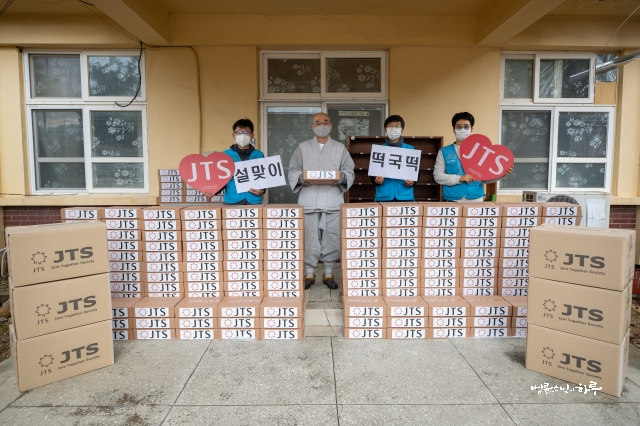 안녕하세요. 오늘 스님은 하루 종일 지적 장애인들과 요양병원, 노숙자들을 위해 설 떡국떡을 배달했습니다.