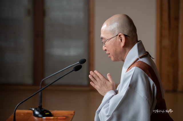 합장을 하고 참가자 모두를 위해 축원 기도를 한 후 법문을 마쳤습니다.