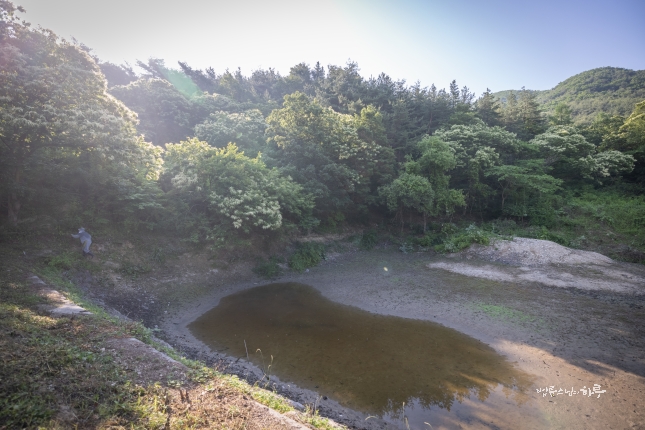 곧 장마가 시작되면 저수지에 물이 다시 차오르기 때문에 스님은 물이 빠진 기회를 놓치지 않고 저수지 안쪽을 정비했습니다. 모래를 옮기기 위해서도 주변을 정비할 필요가 있었습니다. 사람의 발길이 닿지 않는 저수지 안쪽은 야생 밀림처럼 우거져있었습니다.