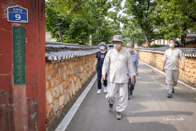 두 분은 지난 1년 동안 온라인으로 법사 교육을 받고, 회향수련과 법사 수계식에 참석하기 위해 미국에서 한국으로 왔습니다. 백신을 맞고 보름간 자가 격리를 한 후 회향수련과 법사 수계를 마쳤습니다. 멀리서 왔지만 아직 으뜸절과 실천장소 중에서 미륵사와 아도모례원을 가보지 못했다고 해서 스님도 특별히 시간을 내어 안내를 해주기로 했습니다.