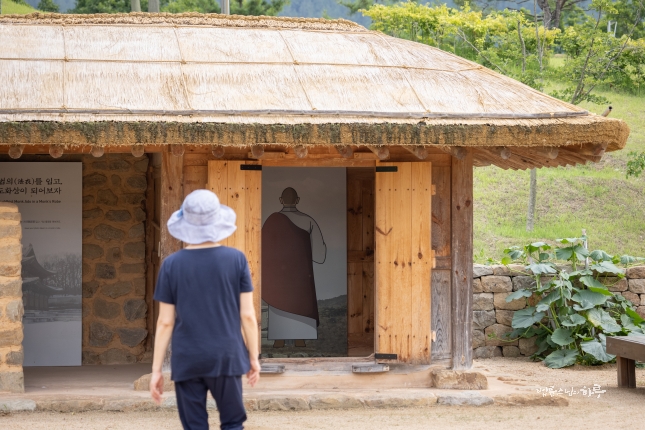 그래서 임금이 그 스님을 위해 절을 지어주고 머무르게 했는데, 얼마 후 그 임금이 죽게 되었어요. 그러자 불교를 반대했던 신하들이 그 절을 허물어버렸고, 그 스님은 도망을 가야 했습니다. 그래서 이곳 모례 장자의 집으로 다시 돌아와서 땅굴을 파고 숨어서 살았습니다. 숨어 살면서 신라 사람들에게 처음으로 불교를 전한 겁니다.