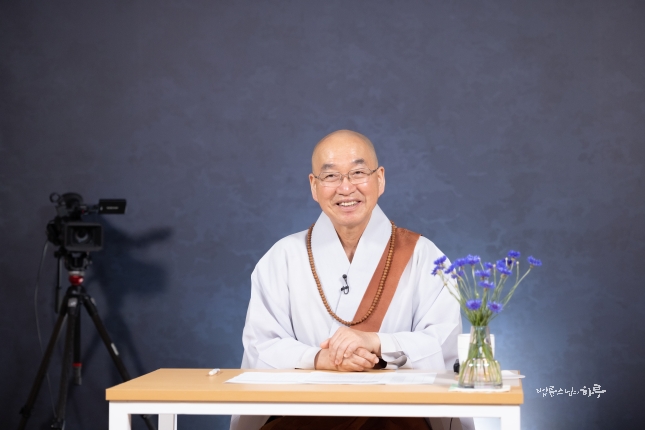 한 달에 한 번 진행되는 영어 통역 즉문즉설 시청자들을 위해 스님이 인사말을 건넸습니다.