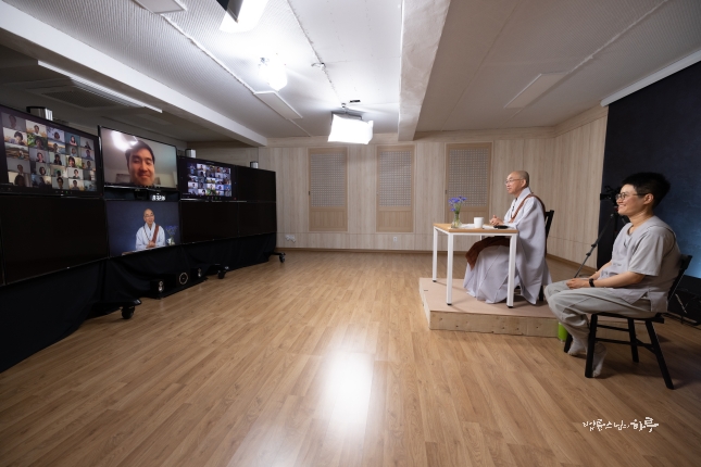 아침 8시부터는 영어 통역 즉문즉설인 ‘Dharma Talk’ 생방송을 시작했습니다. 미국, 캐나다, 유럽 등 세계 각국에서 110여 명의 외국인들이 유튜브로 생방송에 접속했습니다.