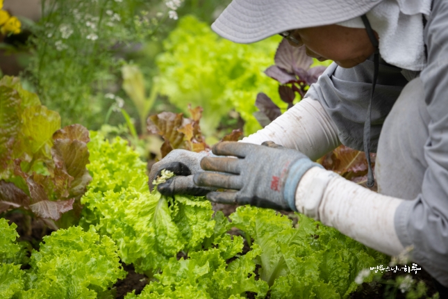 “이 정도면 공동체 대중이 충분히 먹을 수 있겠어요. 상추는 이만큼만 뜯읍시다.”