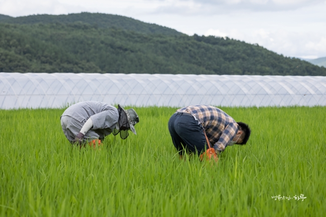 “유기농으로 모를 키우다 보니 제초제를 안 써서 그래요.”