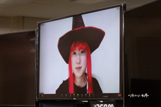 오늘이 할로윈 데이라고 해서 화상회의 방에 입장한 청년들 모두가 유령, 흡혈귀, 해골, 마녀, 괴물 등의 복장을 하고 있었습니다.