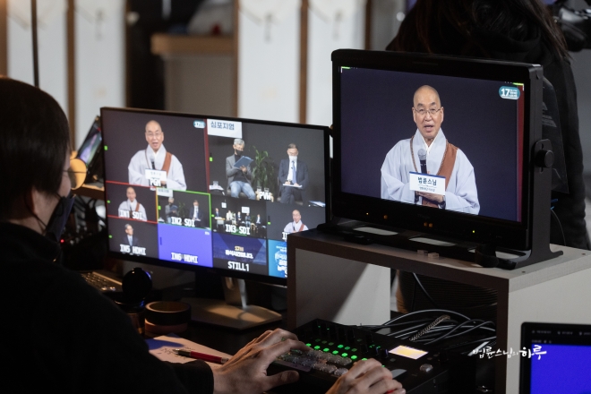 오후 4시에 생방송을 마치고 스님과 발표자, 토론자 모두 기념사진을 찍었습니다.