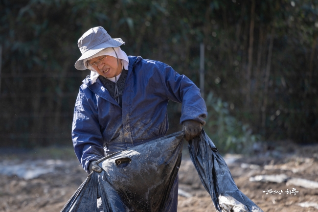 봉사자들에게 합장으로 감사한 마음을 전한 후 가매달 밭으로 향했습니다. 오늘은 겨울을 앞두고 가매달 밭을 모두 정리하기로 했습니다.
