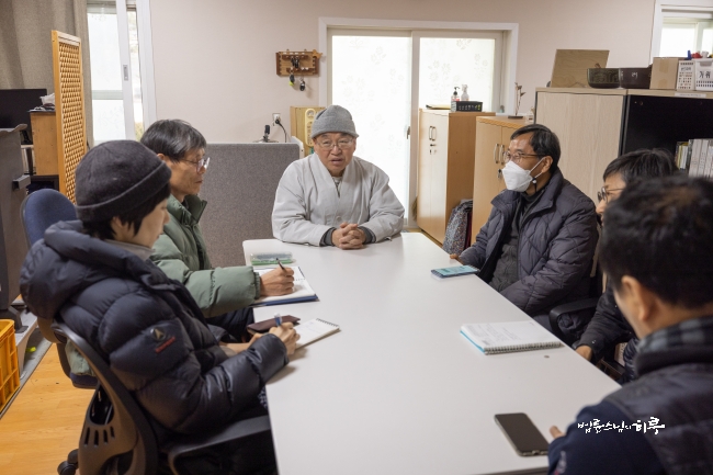 오후 3시에 회의를 마친 후 공동체 법사단은 스님이 제안한 내용을 토대로 계속해서 회의를 이어나갔고, 스님은 어제에 이어서 두북 공동체 성원들과 올해 농사 계획과 불사 계획에 대해 회의를 했습니다.