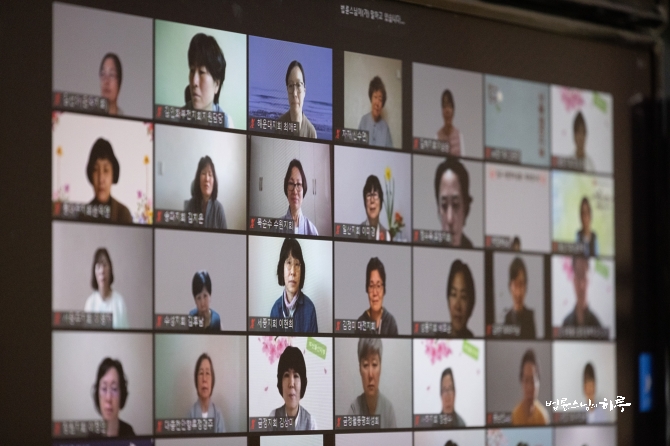 저녁 7시 30분부터는 저녁반 활동가들이 모두 화상회의 방에 입장한 가운데 전법활동가 법회를 시작했습니다. 오전처럼 포살을 먼저 한 후 스님의 법문이 이어졌습니다.