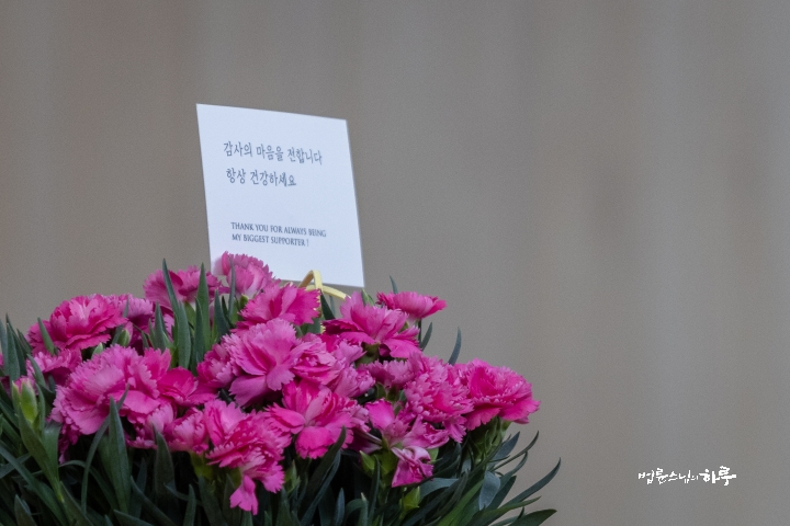 저녁반 전법활동가들도 스님에게 감사의 마음을 담아 꽃다발을 증정하고, 청년활동가가 편지 낭독을 했습니다.