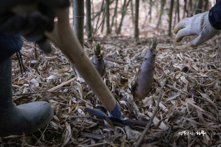 스님은 대나무 사이를 다니며 죽순을 캤습니다.