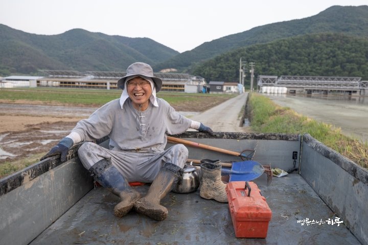 “오늘은 논 하나밖에 못했네요. 내일은 아침 일찍 모내기를 시작할 수 있게 모판을 논둑에 내려놓고 갑시다.”