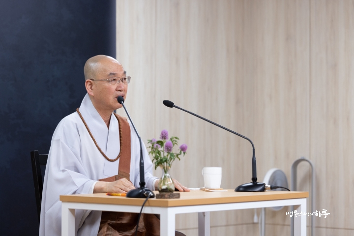 “제 10차 천일결사, 9차 백일기도에 입재한 지 6일이 지났습니다. 작심삼일이라 했는데 그래도 3일을 넘기고 6일째 되는 이 자리에 와 있다면 아주 장한 일입니다. ‘백일을 어떻게 하느냐!’, ‘천일을 어떻게 하느냐!’ 이렇게 너무 부담을 가질 필요가 없습니다. 우리가 인생을 생각할 때도 ‘백 일을 어떻게 사느냐!’, ‘50년을 어떻게 사느냐?’ 이렇게 생각하지 않잖습니까? 하루하루 살다 보면 그것이 쌓여 어느덧 백일이 되고. 어느덧 50년이 되고, 30년이 되는 거예요.