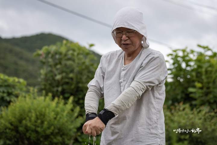 안녕하세요. 두북 수련원의 아침이 밝았습니다. 오늘도 연일 폭염이 계속되고 있습니다. 스님은 새벽 기도와 명상을 마친 후 더위를 피해 아침 일찍 농사일을 시작했습니다.