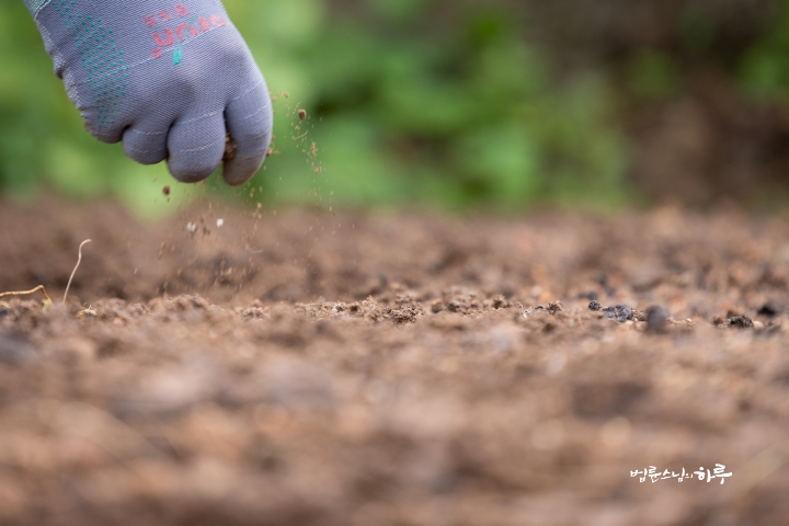 스님은 모기향을 옆에 피워놓고 계속 모종을 심었습니다.