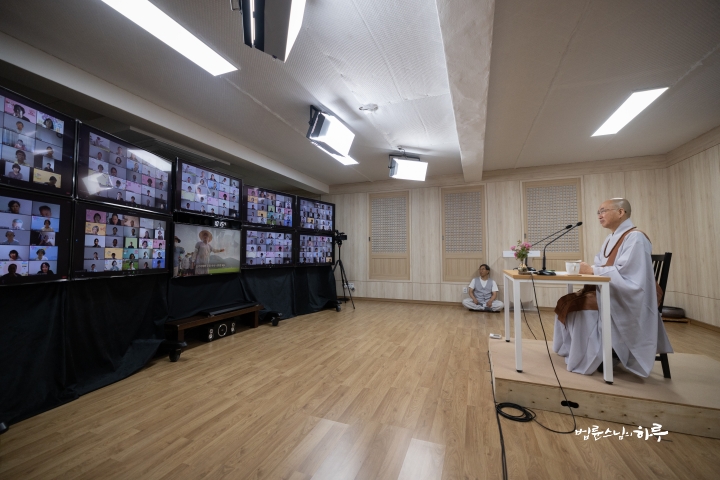 이 외에도 개인적인 고민에 대해 질문을 받고 대화를 나눈 후 수행법회를 마쳤습니다. 대중들은 백중기도 기간을 맞이해 돌아가신 분들과 조상 영가들을 위해 온라인 천도재를 정성껏 지냈습니다.