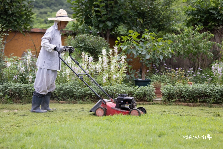 스님은 수련원 건물 주변부터 구석구석 풀을 깎기 시작했습니다.