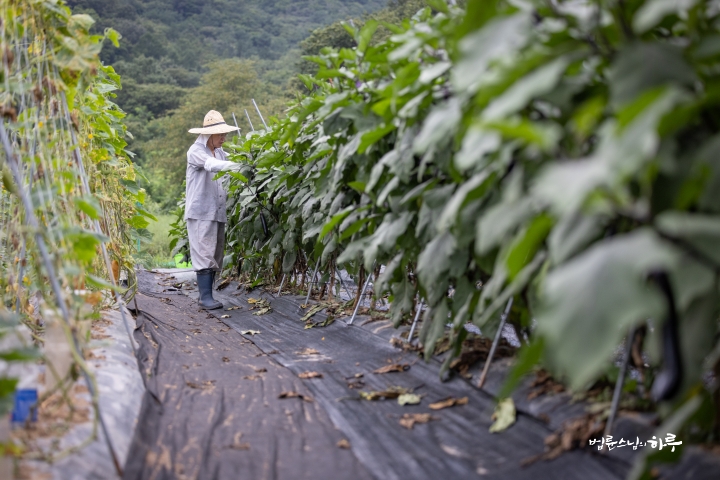 밭에 도착해 먼저 무성한 잎 사이로 가지를 찾아보았지만, 다 큰 가지가 별로 없었습니다.