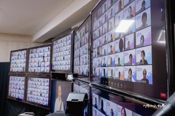 잠시 휴식을 했다가 오후 2시부터는 정토불교대학 졸업식을 시작했습니다. 8400여 명의 졸업생 중에 개근상과 정근상 수상자들이 화상회의 방에 입장하고, 나머지 졸업생들은 유튜브로 함께 했습니다.