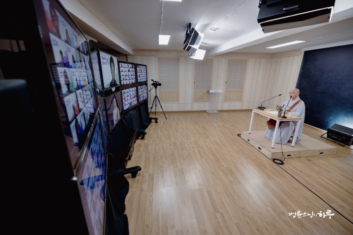 모두 다 9월에 시작하는 경전대학에서 다시 만날 것을 기약하며 졸업식을 마쳤습니다. 졸업생들은 교실별로 화상회의 방에 모여 마음 나누기를 이어나갔고, 스님은 방송실을 나왔습니다.