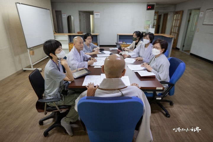 입재식을 마치자마자 스님은 법당 2층에서 개관식 준비팀과 회의를 했습니다. 인도로 출국하기 전에 점검할 사항들을 확인했습니다.
