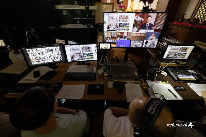 발우공양을 마친 후 오전 9시 30분부터 서초법당 1층에 제10차 천일결사 제9차 백일기도 회향식을 시작했습니다. 국내외에서 9천5백여 명이 생방송에 접속한 가운데 입재식을 시작했습니다.