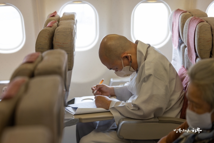 2시 20분이 되자 비행기는 하늘 위로 이륙했습니다. 코로나19로 인해 2년 6개월 만에 갖는 해외 일정입니다. 스님에게 오랜만에 인도에 가는 소감을 물어보았습니다.